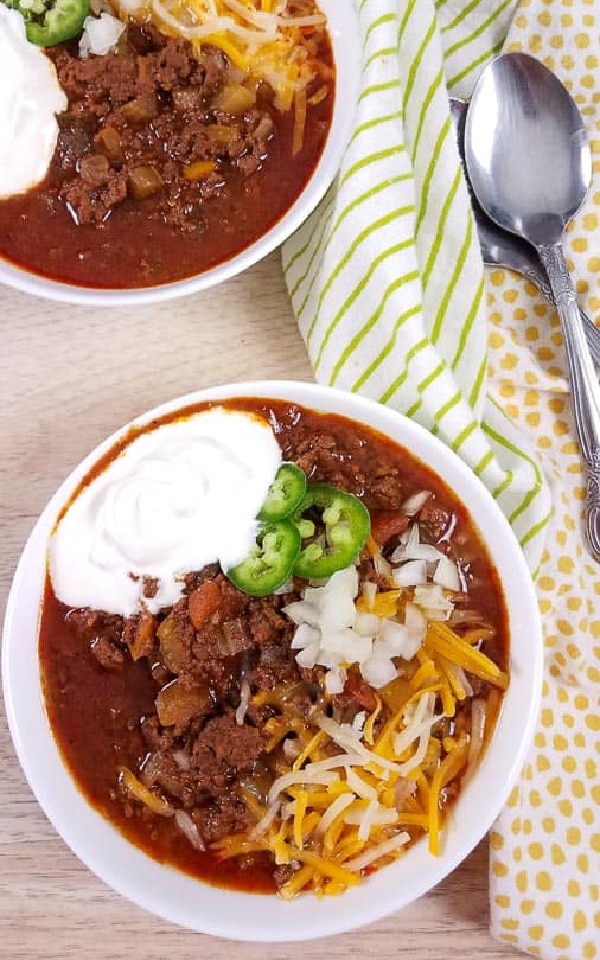 Did you know that some people are passionate about chili and will emphatically insist that chili con carne should never contain beans? And chili without beans is also great for people who are watching carbs, so today I’m sharing Slow Cooker and Instant Pot No-Bean Chili Recipes.
