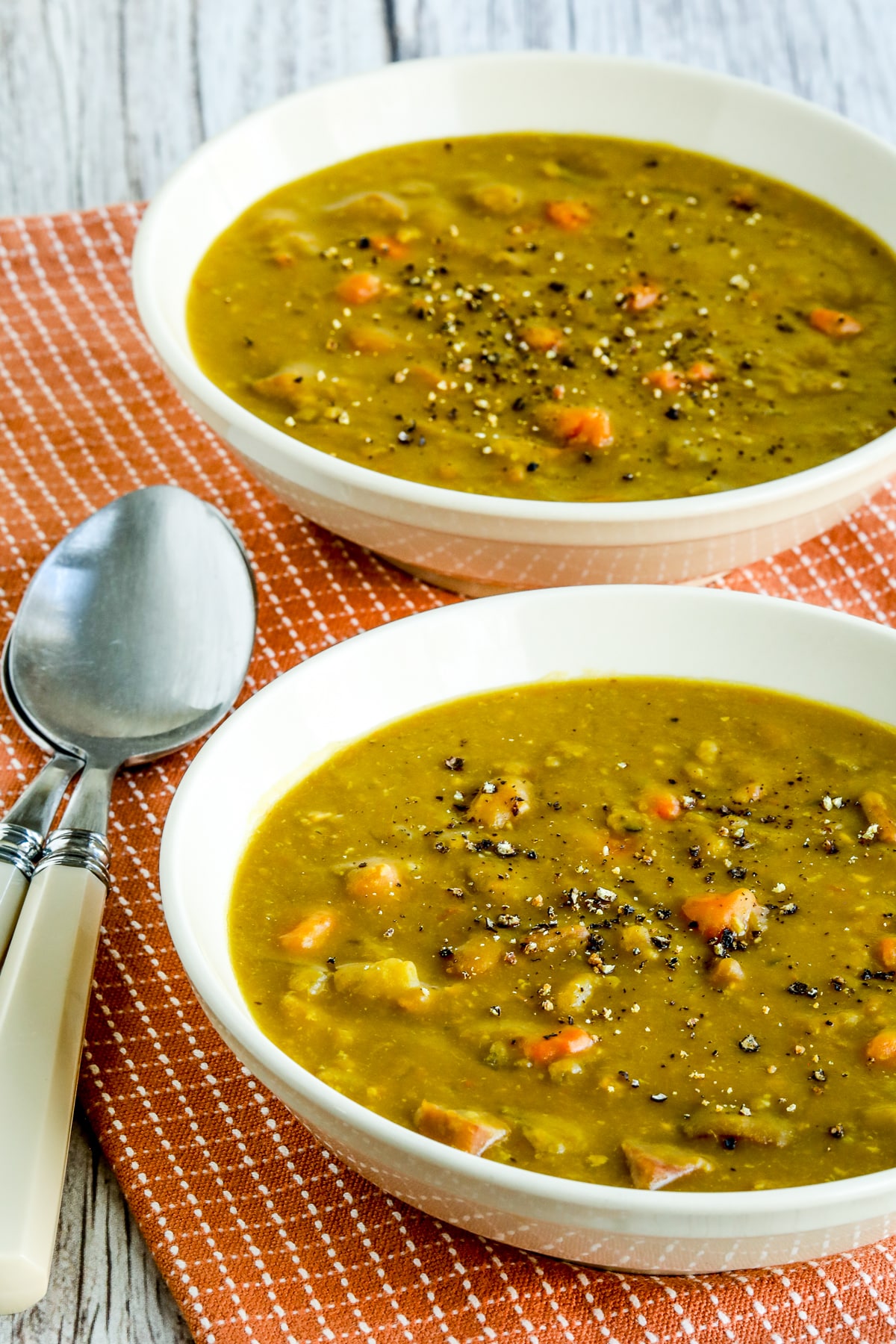 Instant Pot Split Pea Soup from Kalyn’s Kitchen has ham, red bell peppers, and sweet potatoes, or there is an option to skip the sweet potatoes and use more red bell pepper for a lower-carb version!