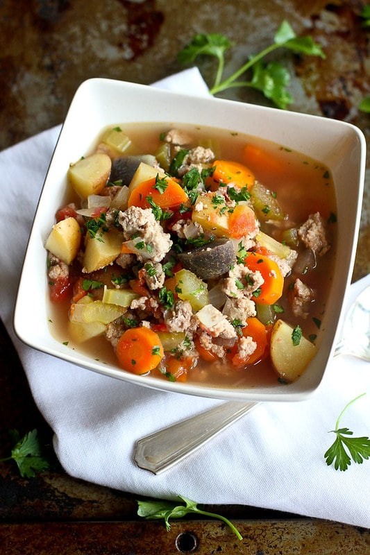 This collection has a wide variety of potato soup variations, including recipes with corn, cheese, sour cream, bacon, ground turkey, Kielbasa, cabbage, cauliflower, beans, leeks, and more! If you explore the links a bit I think you’ll be amazed at the wide variety of ideas here for potato soup!